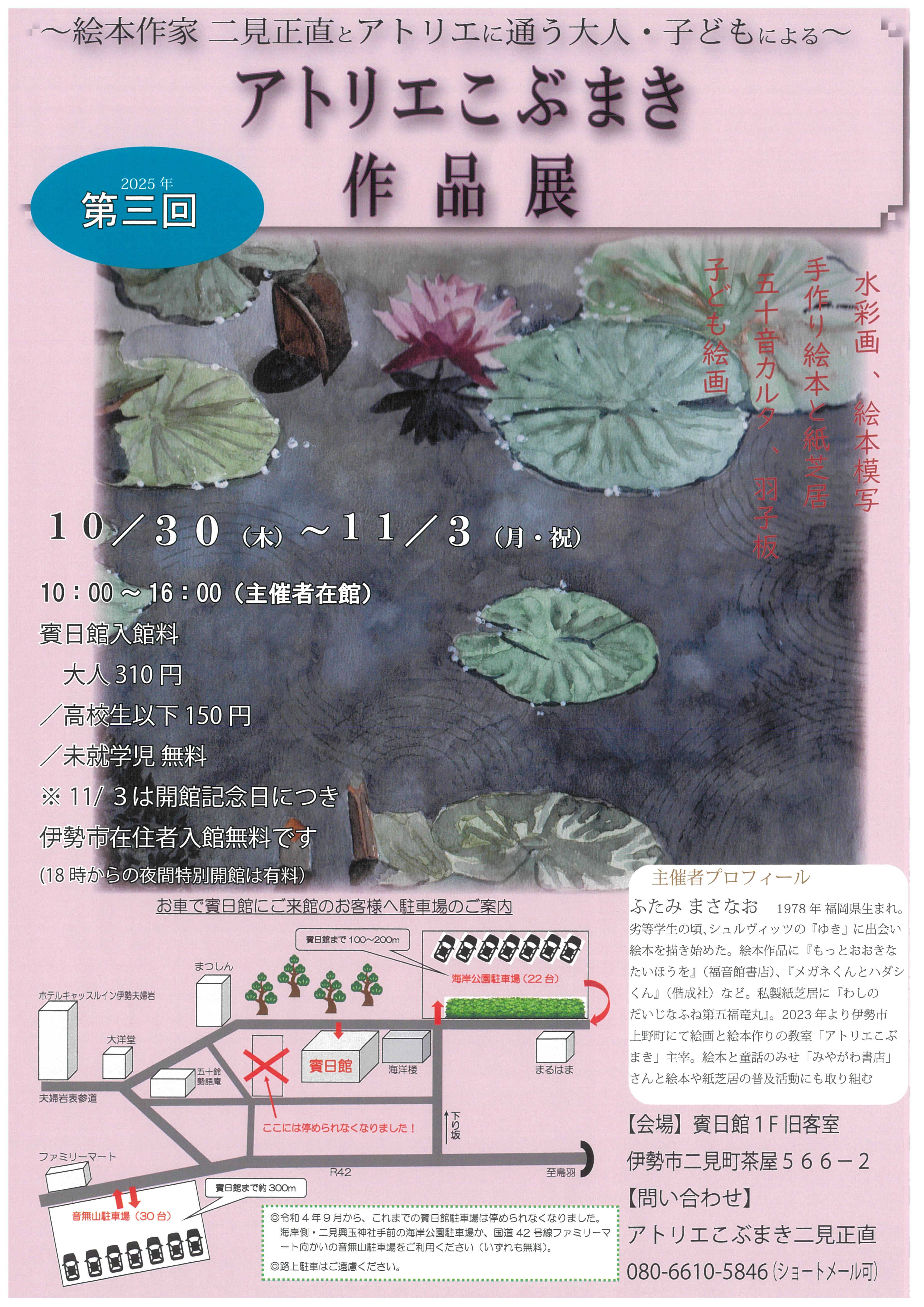 | 電話番号 | 080-6610-5846(アトリエこぶまき二見正直) |
