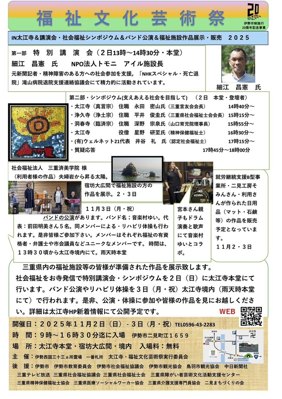 ふくしぶんかげいじゅつさい 福祉文化芸術祭 IN太江寺&講演会・社会福祉シンポジウム&バンド公演&福祉施設作品展示・販売2025