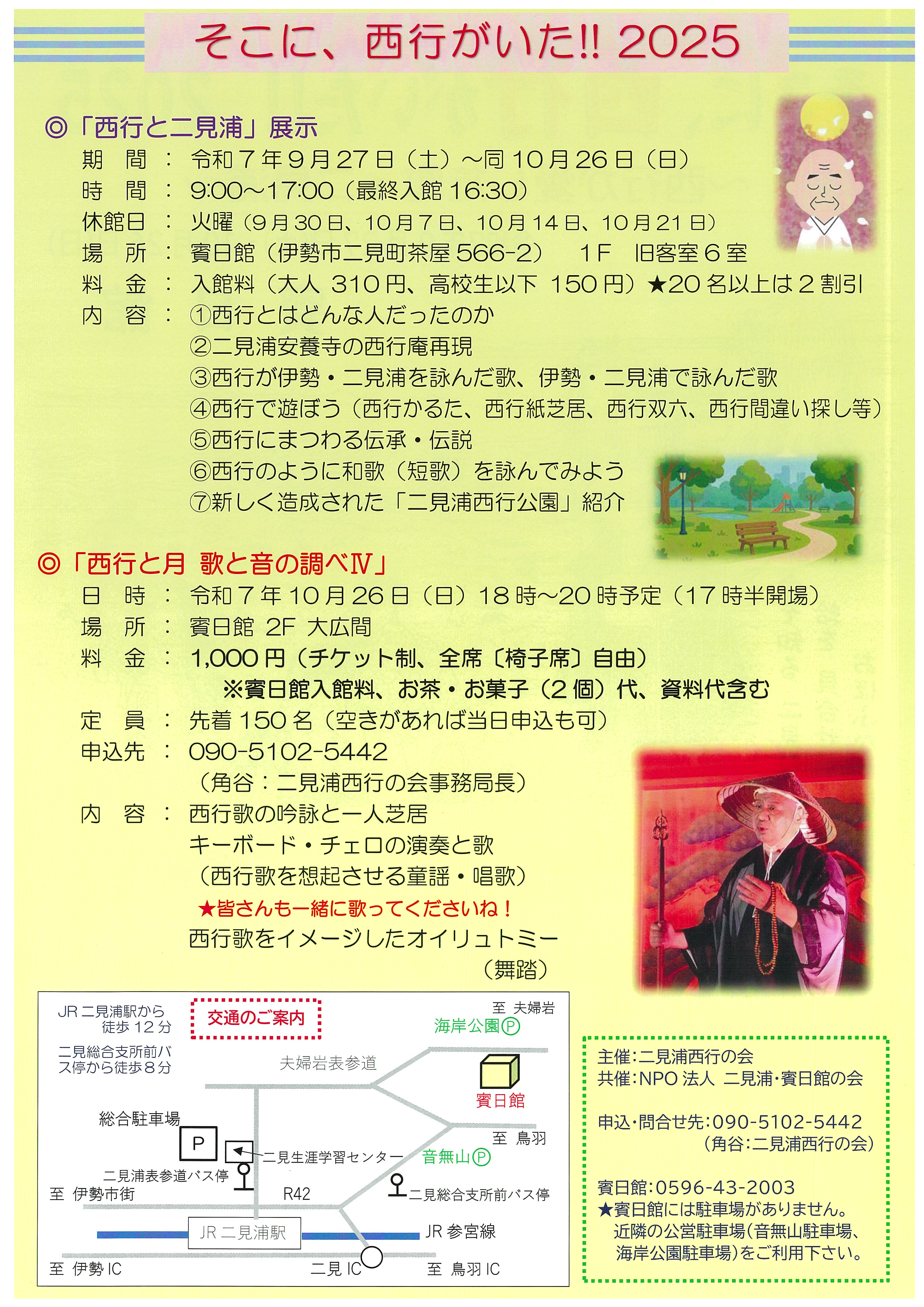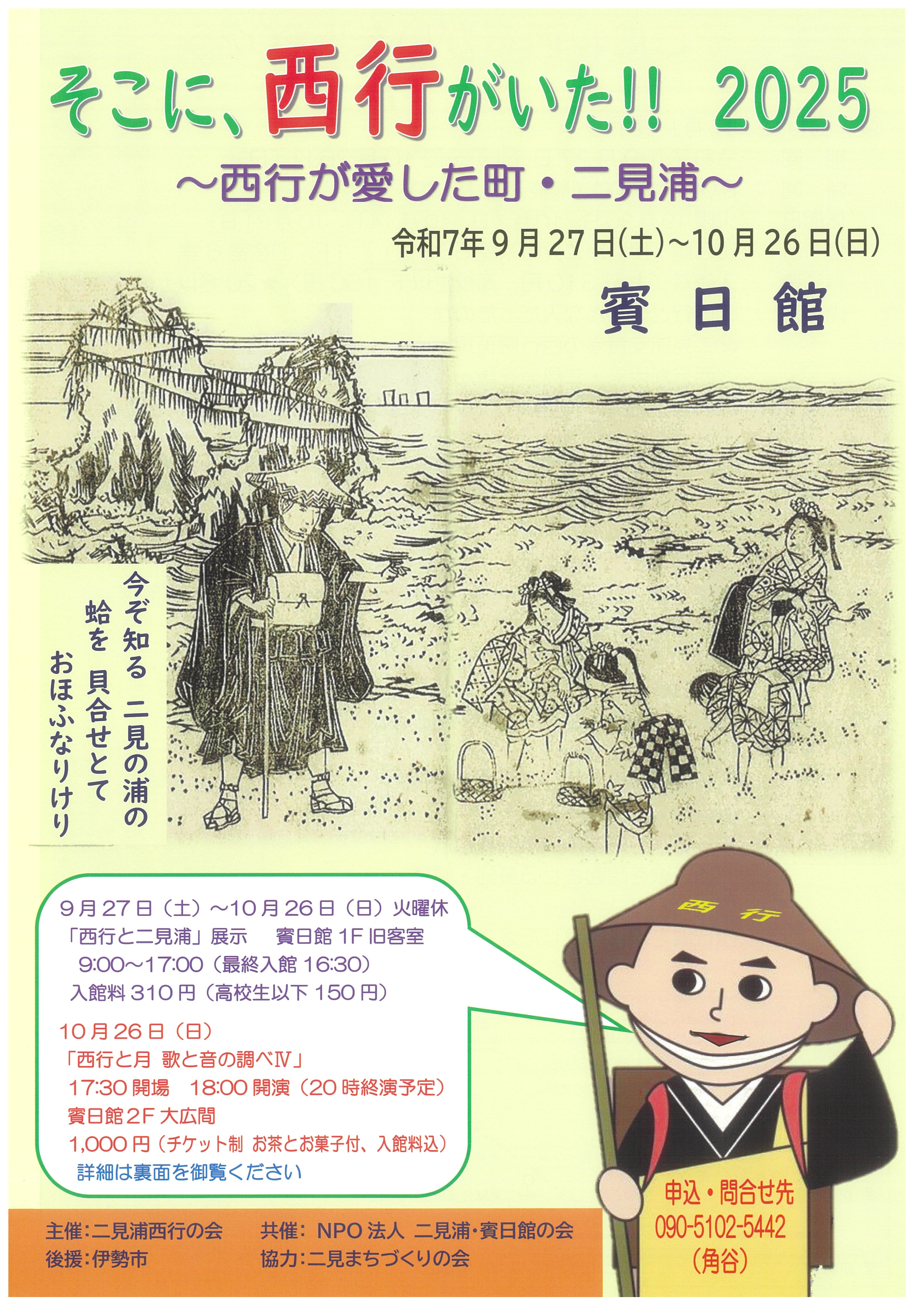 | お問い合わせ | 090-5102-5442(角谷:二見浦西行の会 事務局長) |