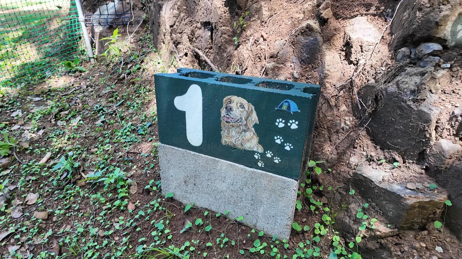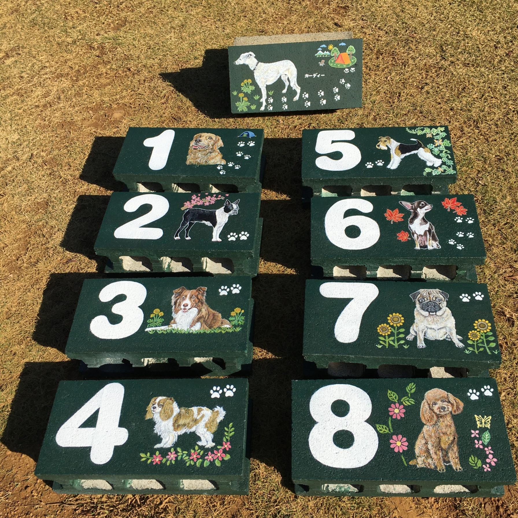 全て柵で囲われているので、区画内でワンちゃんがリードなしで自由に走り回れるようになっており、リードを繋ぐポールやトイレ処理の水も置いてあります。サイトの番号にはワンちゃんの可愛いイラストが描かれていて、愛犬家には嬉しい撮影ポイントになりますね!