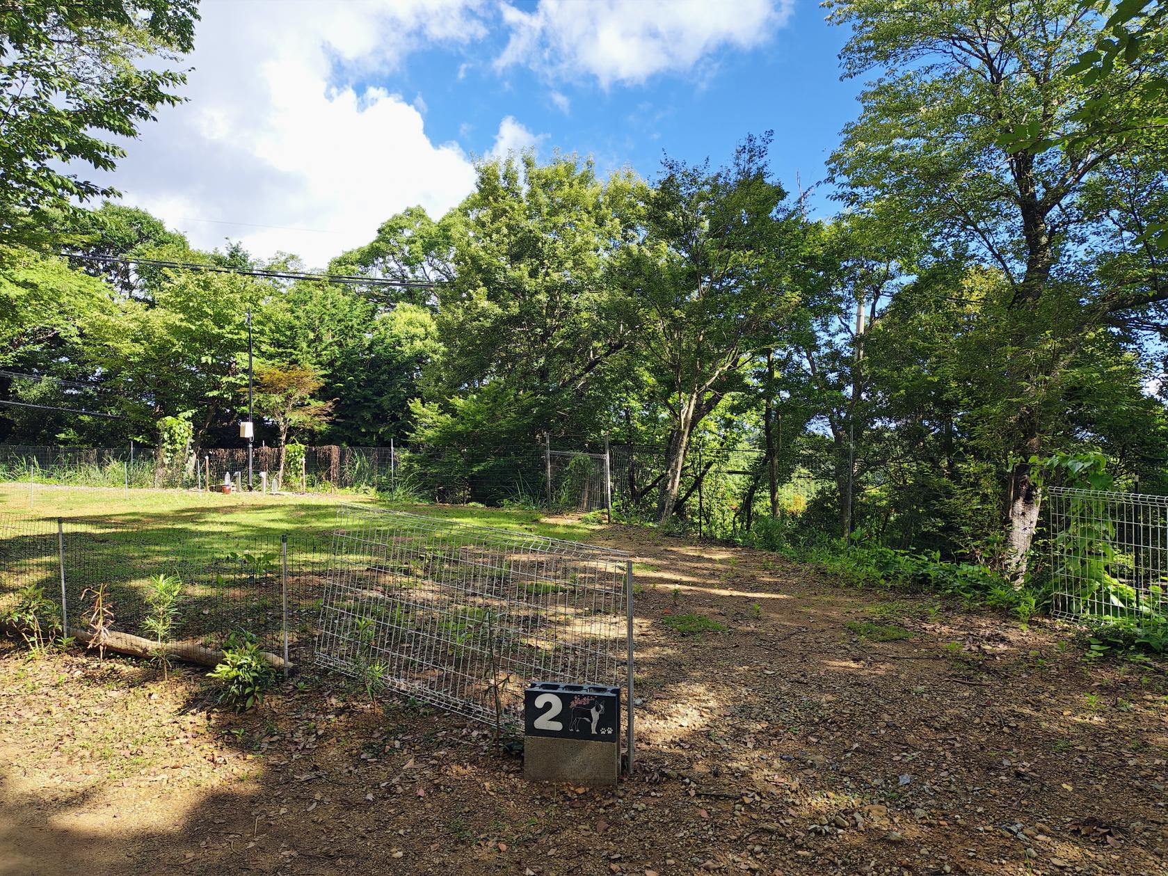フリーサイトは2カ所(9番、10番)あります。9番はソロキャンパー向けのほぼ1組サイズで、10番はファミリーキャンプで3組ほど入れるサイズです。フリーサイトには、電源はありません。また、柵もありませんのでワンちゃん同伴の場合はリードをつけてください。