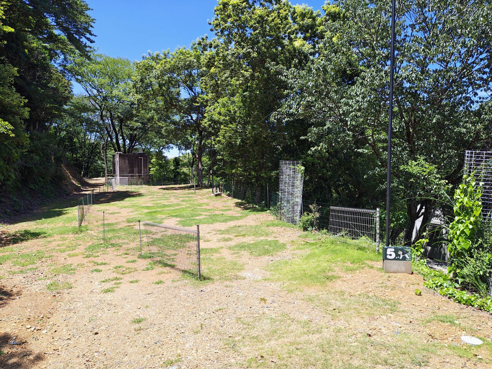 1番~5番サイトは木々に囲われているので木陰サイトと呼ばれています。1番と2番は管理棟や共有施設から少し離れた場所にありますが、その分プライベート感が守られ、静かにキャンプを楽しむことができそうです。3番サイトは、他のサイトとよりも少し広く細長い形をしています。このサイトが空いている場合は、ドッグランとして開放する事もあるので、他のキャンパーさんやワンちゃん同士の交流の場にもなりそうですね!