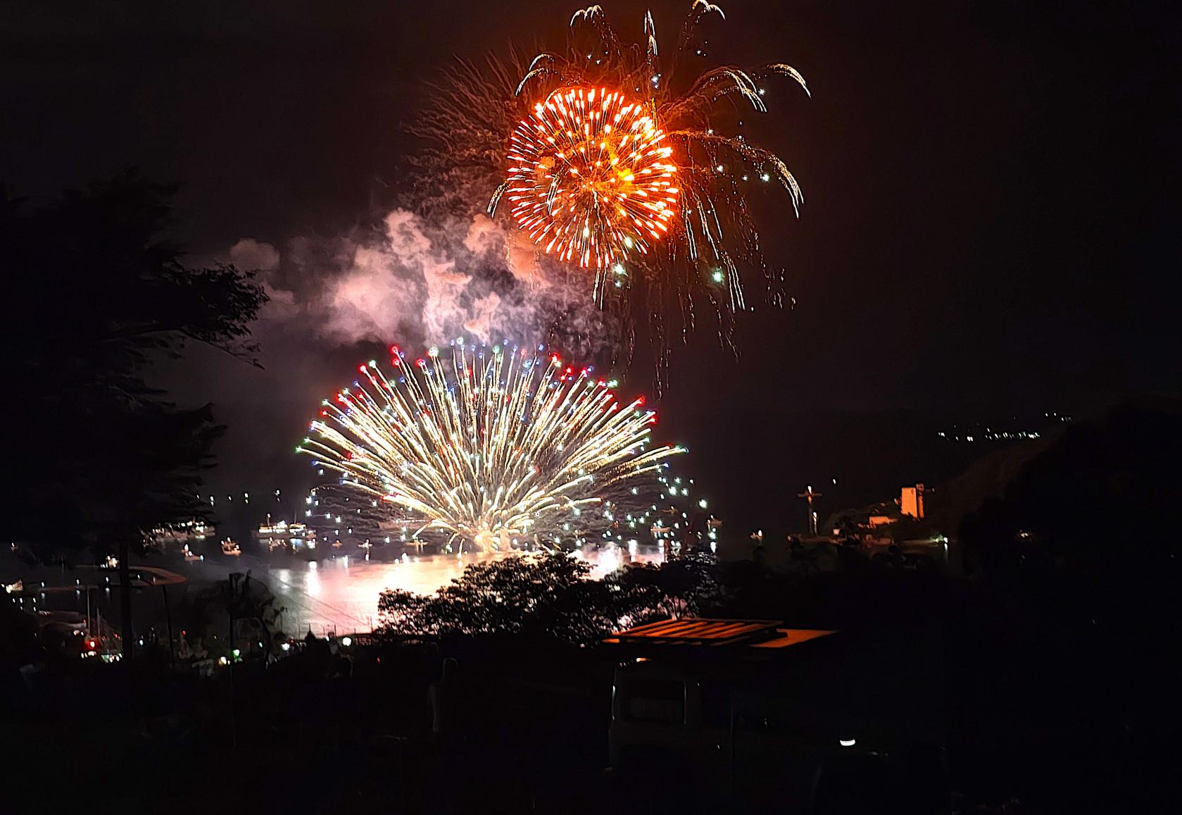 日によって打上場所(小浜湾、安楽島湾、佐田浜)は違いますが、「GRENBLU」の絶景サイトからはどれも観ることができます。小浜湾で打ち上る花火は少し遠目になるので、大迫力の花火を楽しみたい場合は、佐田浜や安楽島湾から花火が打ち上がる日をチェックしてくださいね!